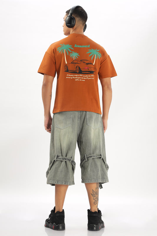 Oversized Boxy Fit Cropped Length PORSCHE ON VACATION Tees (FIERY ORANGE)