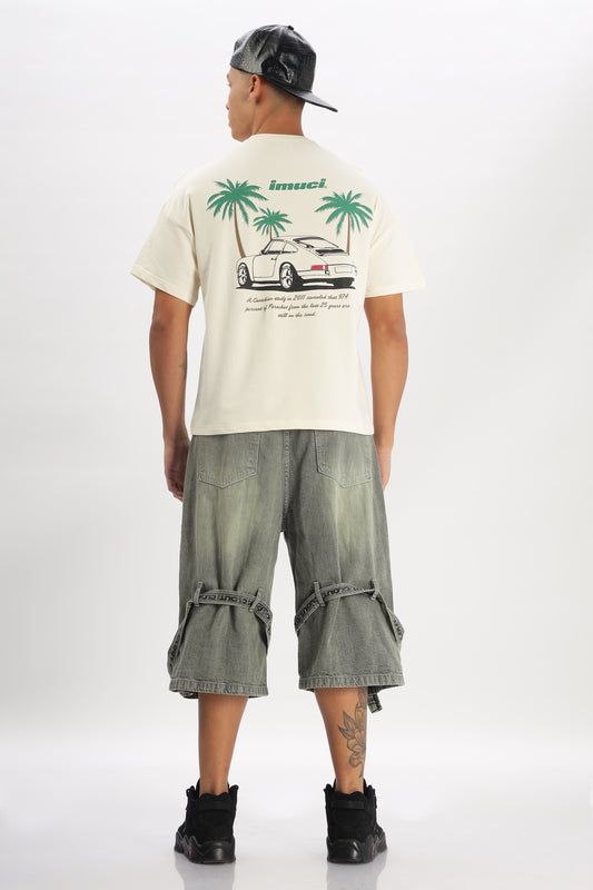 Oversized Boxy Fit Cropped Length PORSCHE ON VACATION Tees (OFF-WHITE)
