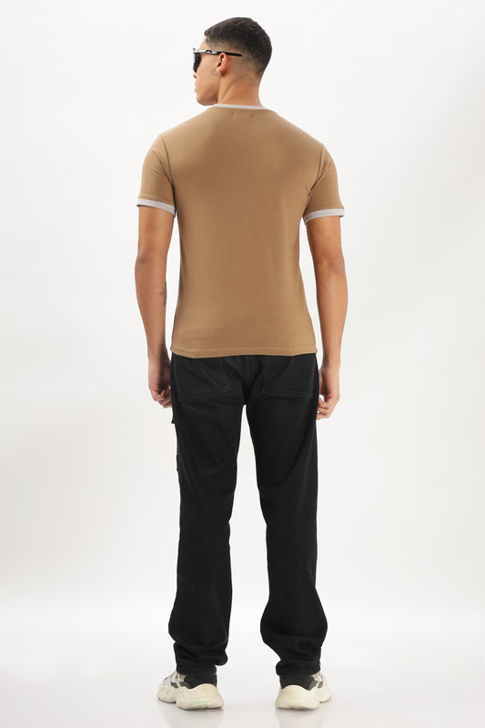 Regular Boxy Fit Retro Ribbed Tees (PALE BROWN)